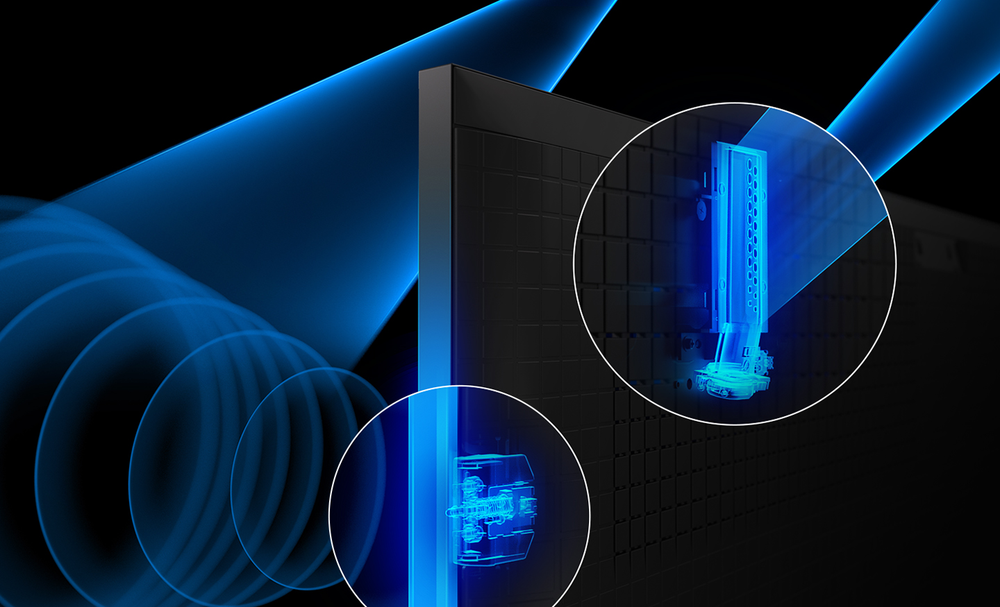 Os novos televisores BRAVIA 9 apresentam um suporte Acoustic Multi-Audio+ e, a nível mundial, são os primeiros 6, com Beam Tweeter no topo e Frame Tweeter nas laterais, para oferecer um som surround de qualidade cinematográfica. Todos os sons provêm exatamente do mesmo lugar.